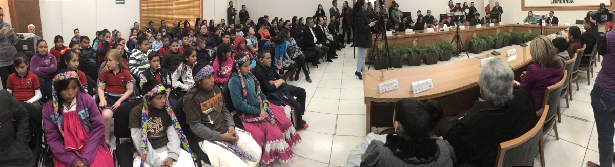 Además, en representación de la niñez chihuahuense participaron los niños: Josué Gilberto Jaquez Domínguez, estudiante de los Servicios Educativos del Estado de Chihuahua; Joaquín Rojo Marín, alumno representante del Consejo Nacional de Fomento Educativo; Ana Karina Aguirre Palma, alumna representante del Sistema de Educación Indígena; Alisson Yazmín Holguín Rocha, alumna representante del Sistema de Educación Especial y Emmanuel Giovanny Hernández, alumno representante del sistema federal.
